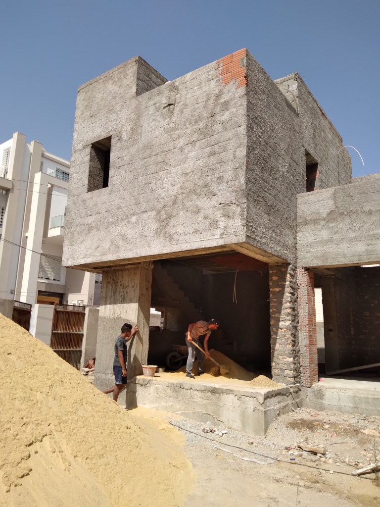The owner asked us for an expertise on the implementation of the natural lime plaster (NHL3,5 from INTERCHAUX).His mason had an approximate knowledge of lime coatings, but not enough. His first tests were not conclusive. We identified the quality of sand and the appropriate mix-design. The rendering was applied on the outside directly on 12-hole pre-coated brick with cement.