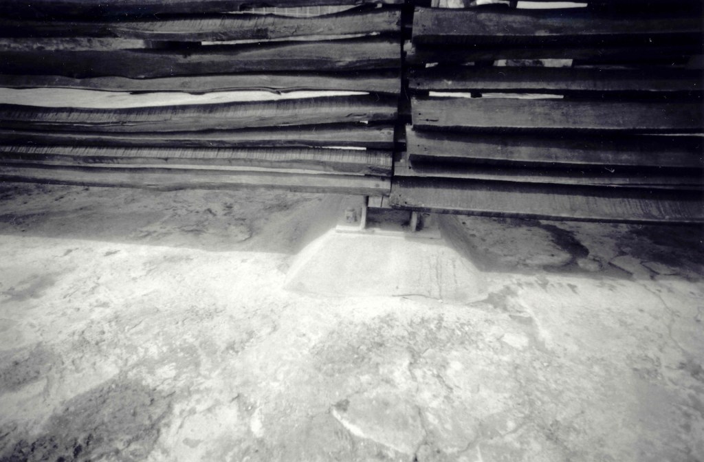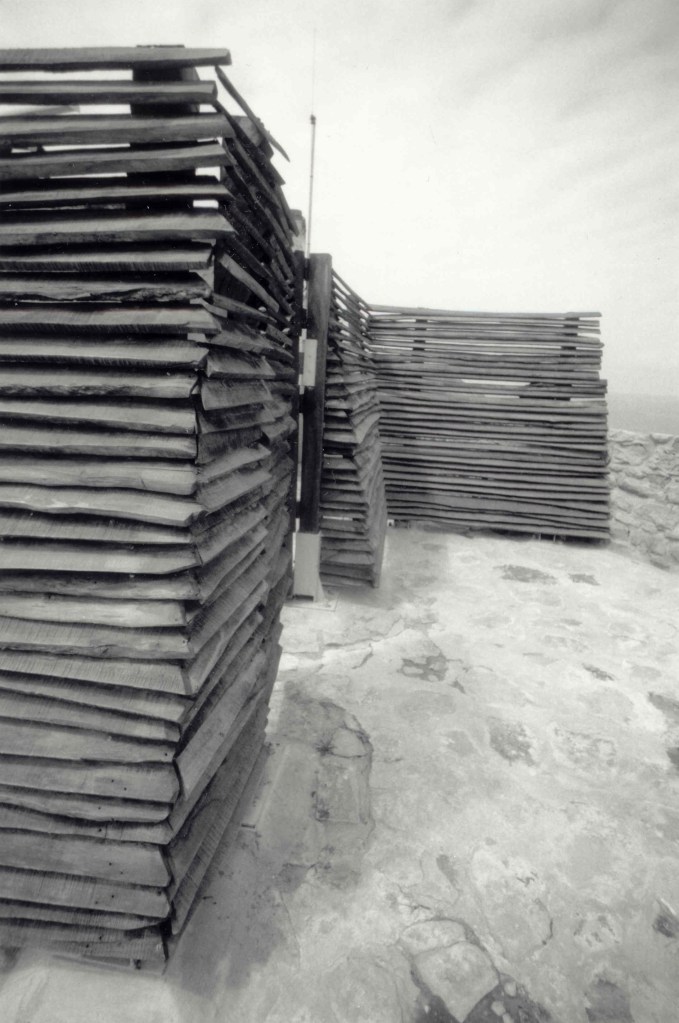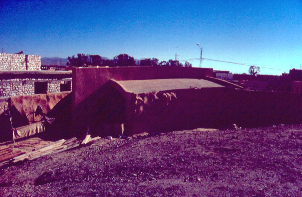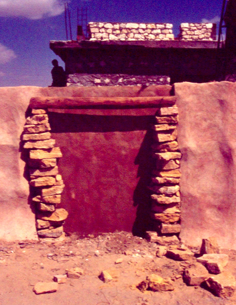 Frame in Gafsa stone sealed with NHL mortar, crossbeam in Gafsa palm wood, support wall in stone masonry coated with NHL.