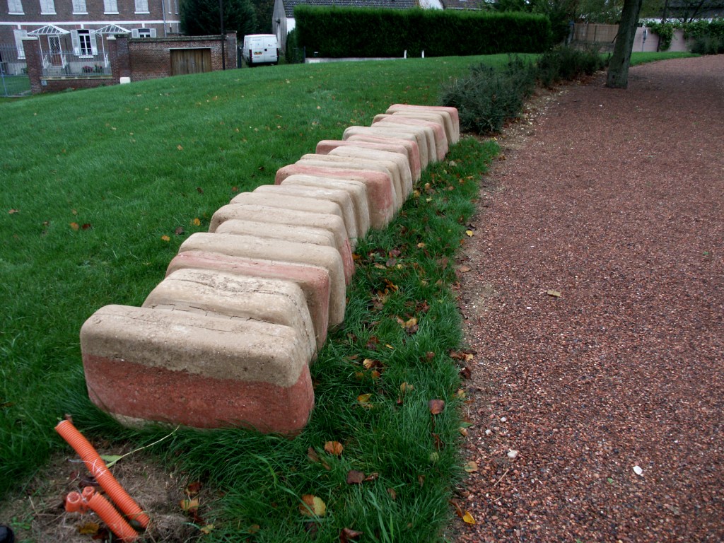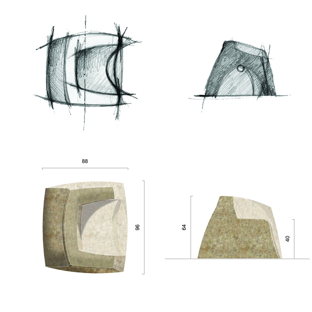 Different dimensions and types of indoor and outdoor seats made with local rammed earth.