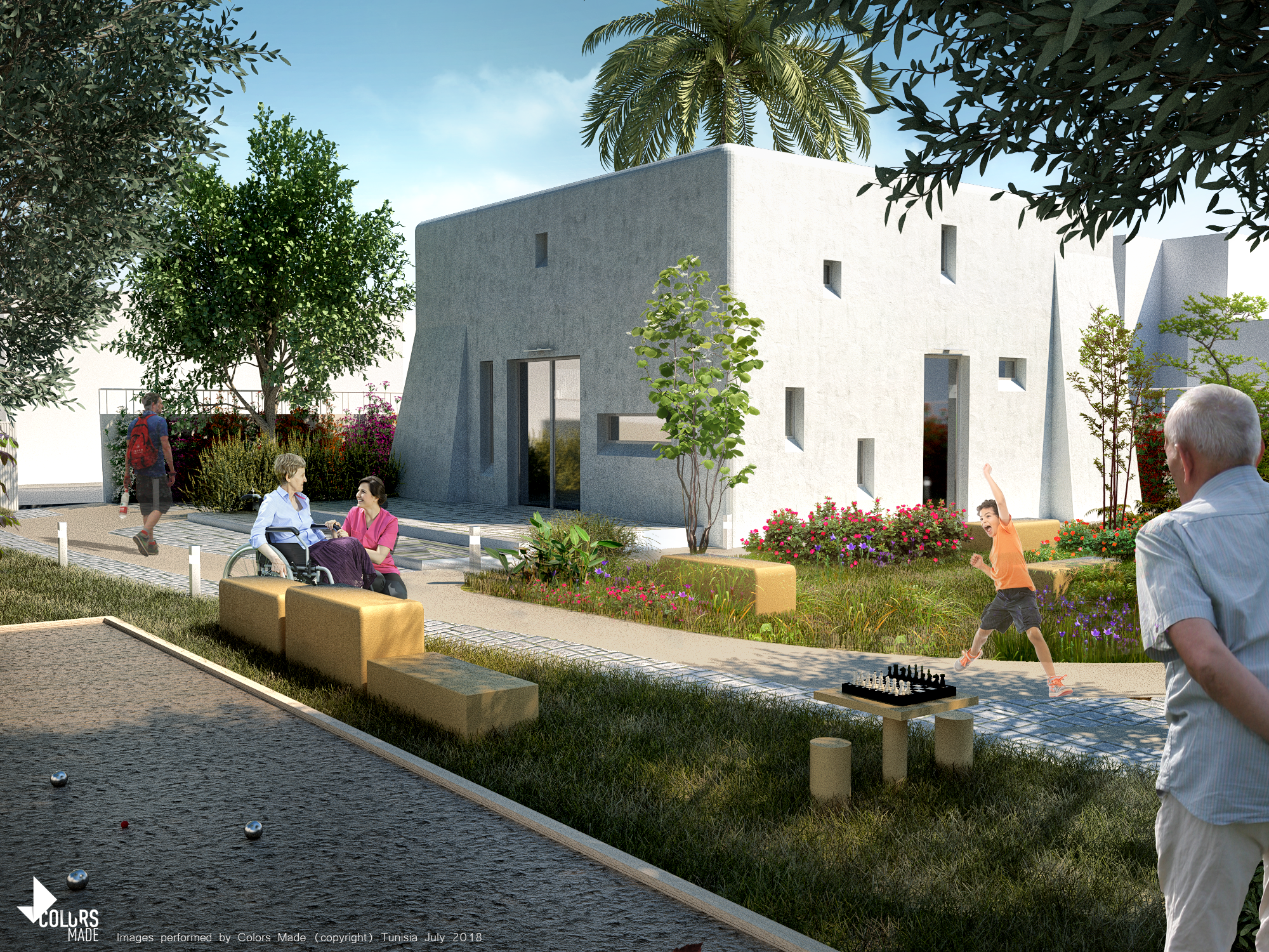 | Description | Creation of a social and community centre on an abandoned municipal garden: new construction (90m2), renovation (35m2), children’s playground, petanque, multi-sports ground, nurseries, rainwater tanks, disabled access. |